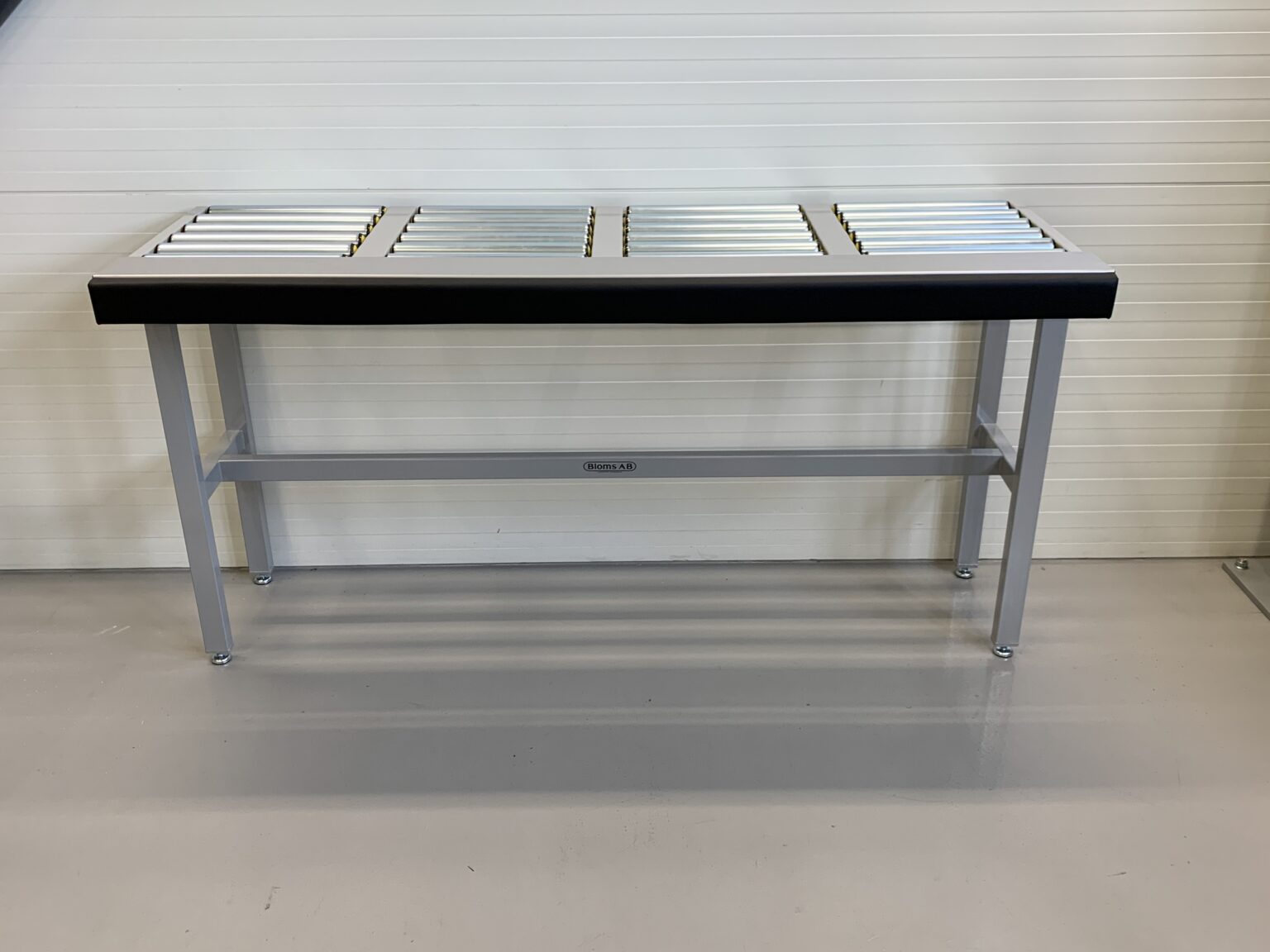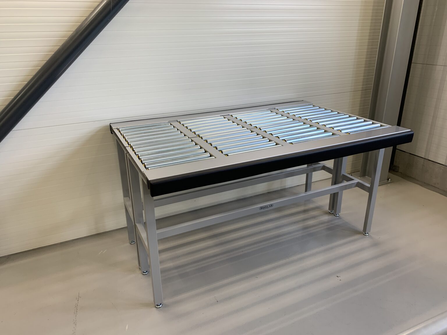 närmast operatören. Bordsdelen ligger några mm över rullarna för att