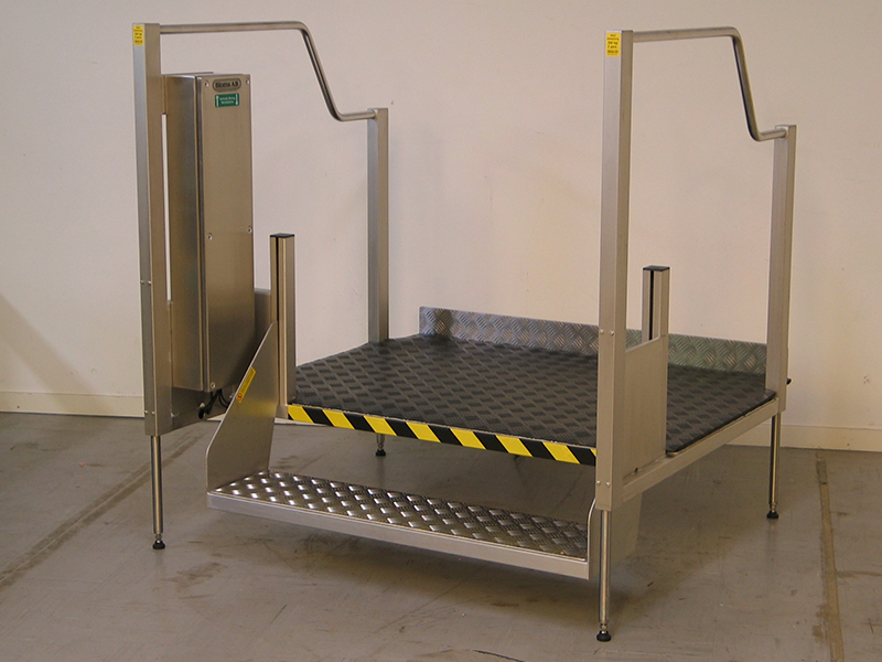 Lyftgolven är utrustade med ErgoDurk, räcken, och med klämskyddsplåtar både runt om och mellan golven, för att skydda vid nedåtgående rörelse samt minska klämrisken mellan. Elektrisk höjdjustering av plattformen med hjälp av knappsats i IP-klassat utförande. Även motorlådan är IP-klassad och elutrustningen är skyddsjordad.