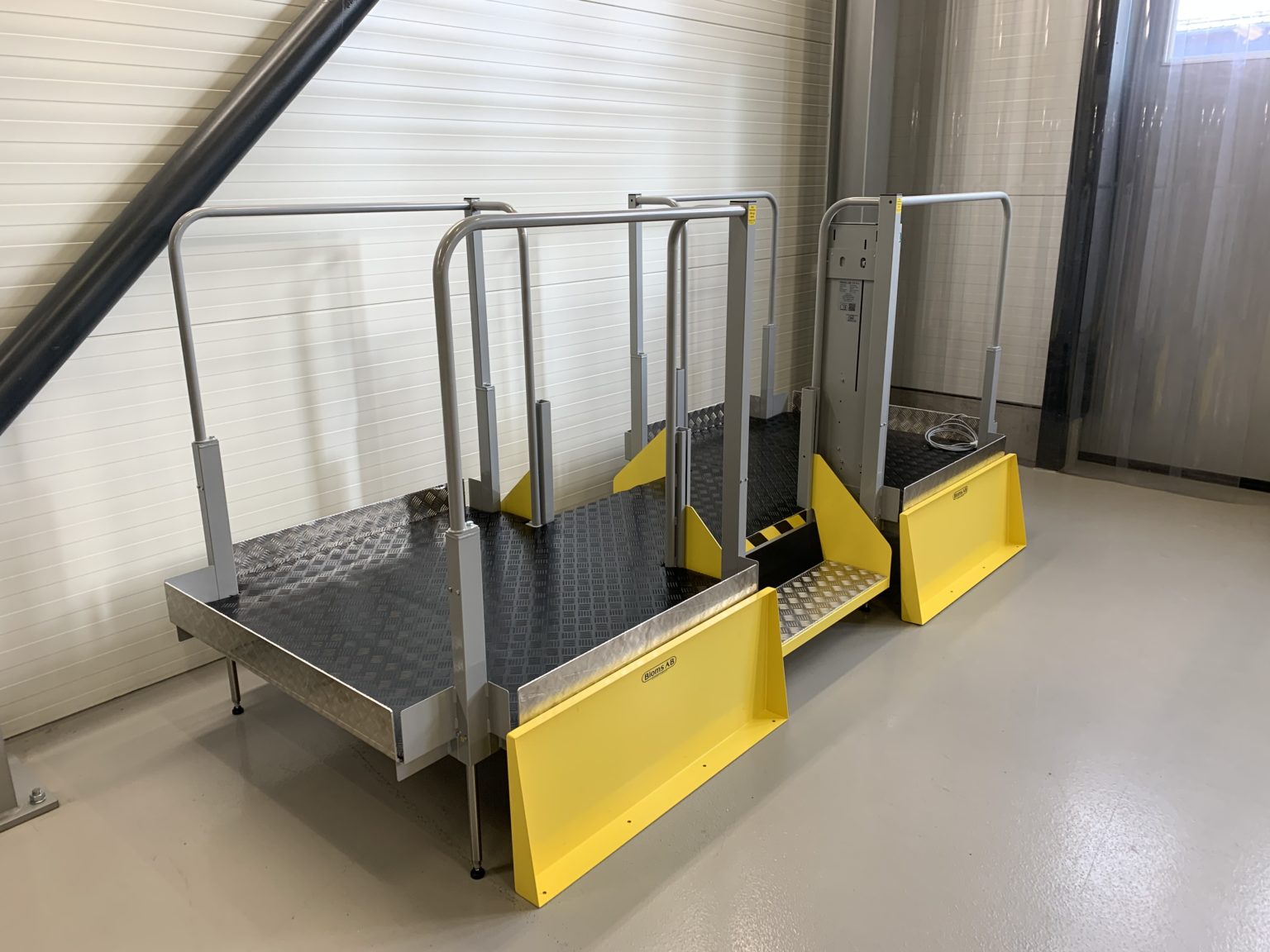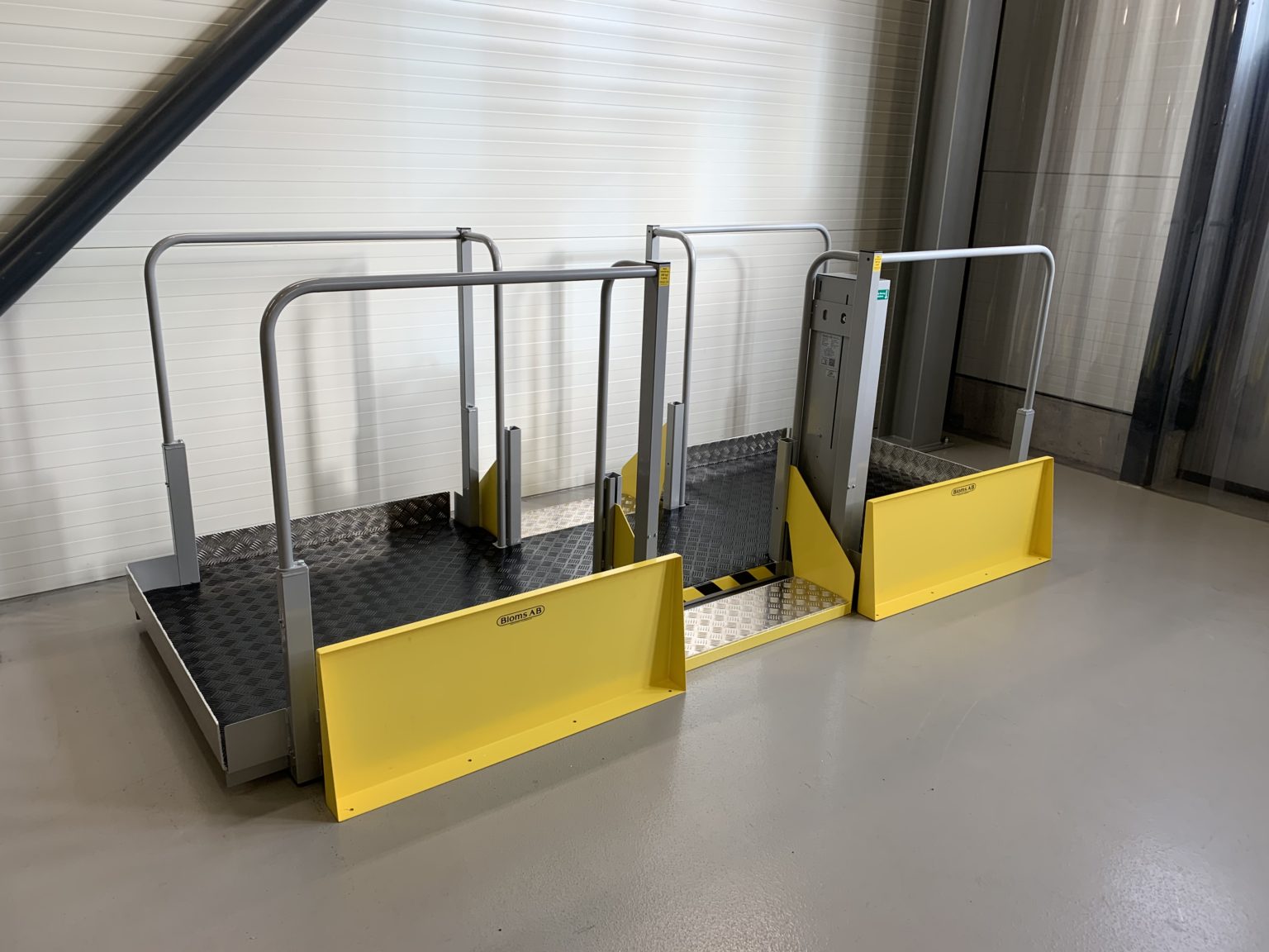 Levereras med 2 medföljande lågbyggda trappsteg som halverar