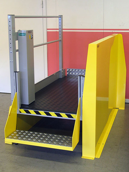 På ena långsidan finns ett gult lutningsstöd som gör det enklare att sträcka sig över och plocka varorna