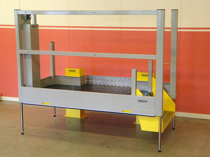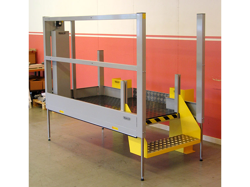Mindre lyftgolv anpassat efter kunden arbetsplats, försett med räcke och trappa. Den ergonomiska plattformen har en motor inbyggd i skyddsjordad motorlåda som skyddar mot yttre påverkan monterad stående på plattformen i bakre inre hörnet och höjdreglering görs med elektriskt manöverdon i industriutförande.