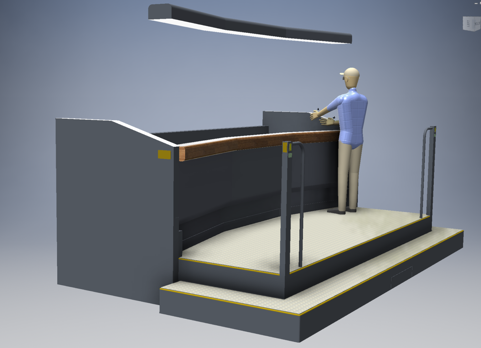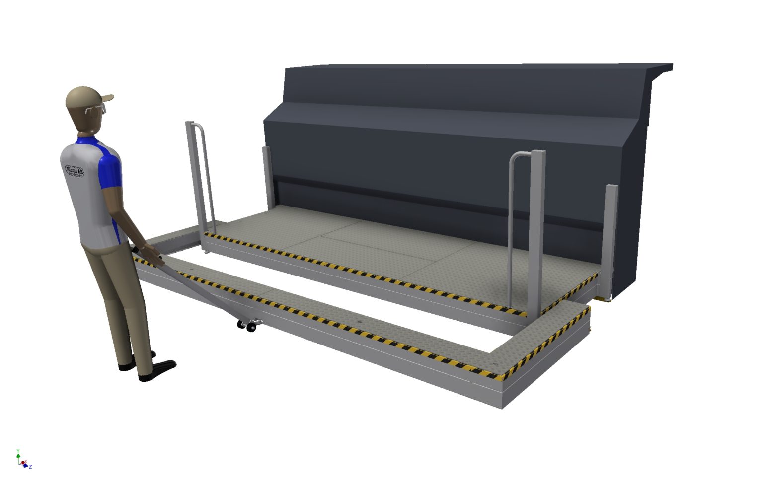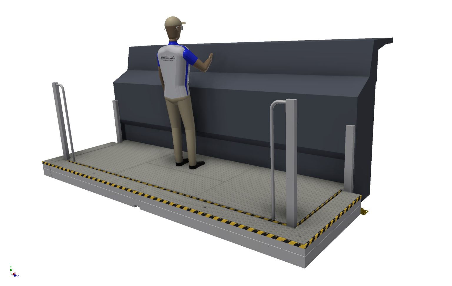Arbetsplattformen som är mobil vid sänkning till nedersta läget med hjälp av speciell elektronik/el underlättar service vid arbetsstationen. Lyftgolvet ger en god ergonomisk arbetsmiljö vid arbetsstationen. Plattformen har kapacitet för fyra personer eller upp till 350 kg.