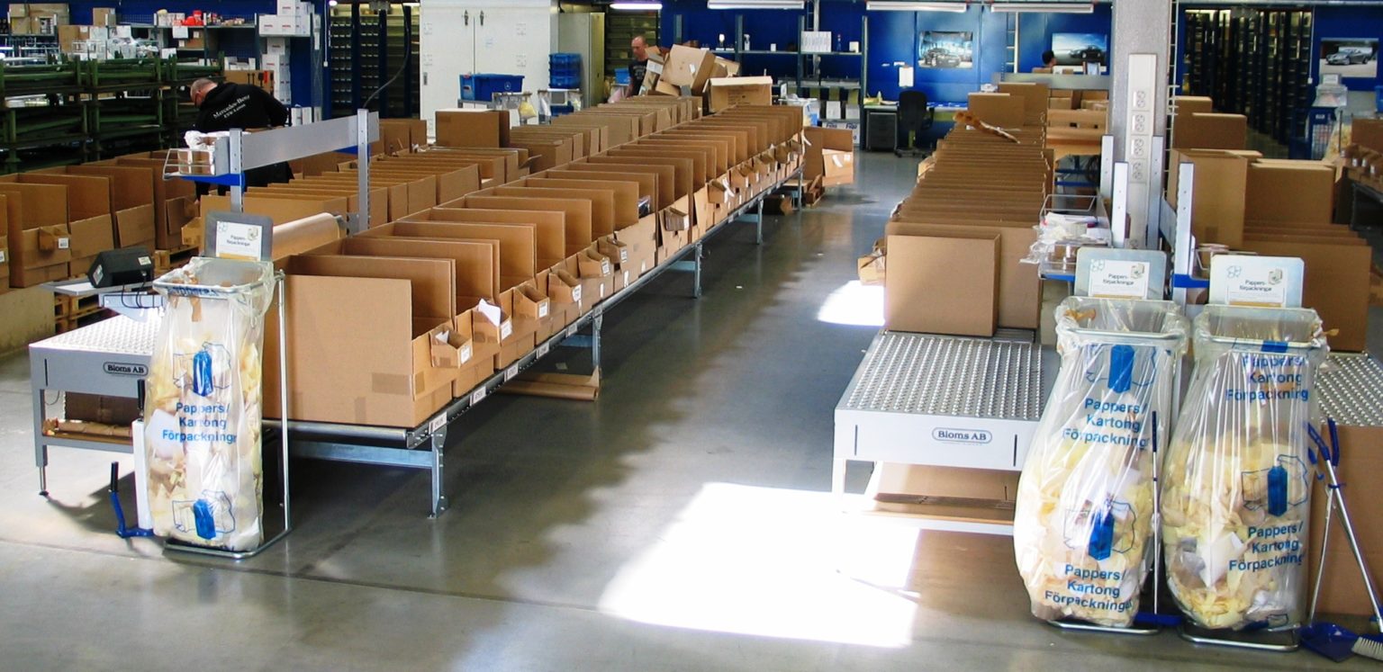 För effektiv packning av reservdelar till bilar har Bloms levererat rullbanor samt packbord med kulrullar och inbyggda vågar.