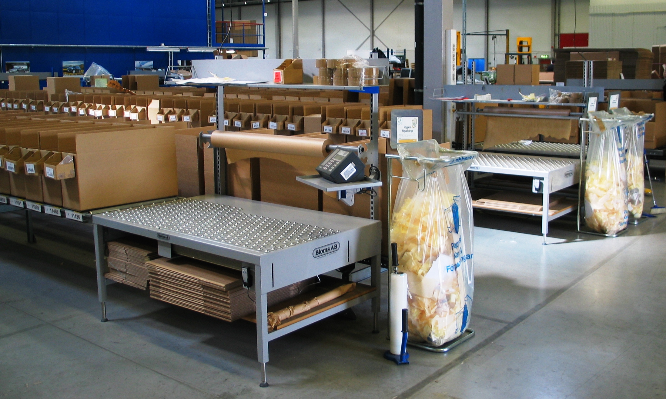 För effektiv packning av reservdelar till bilar har Bloms levererat rullbanor samt packbord med kulrullar och inbyggda vågar.