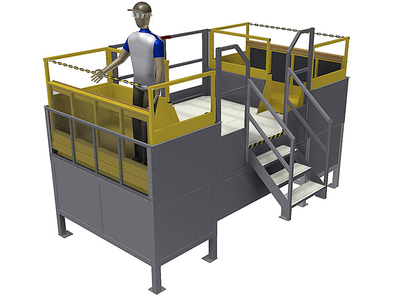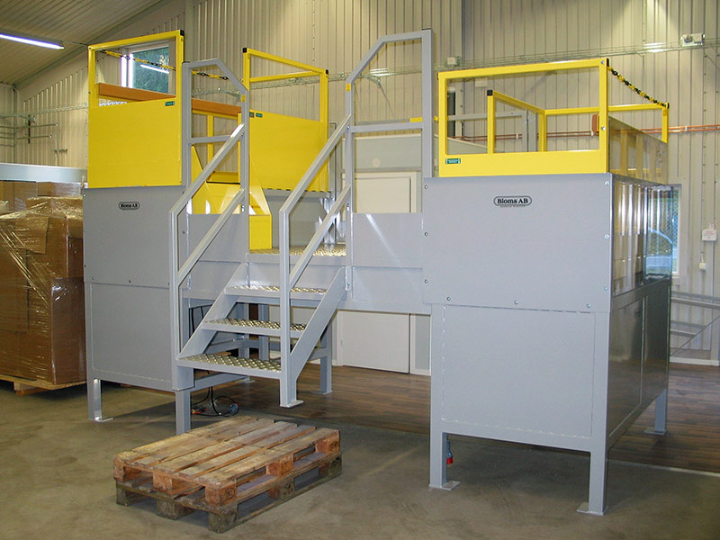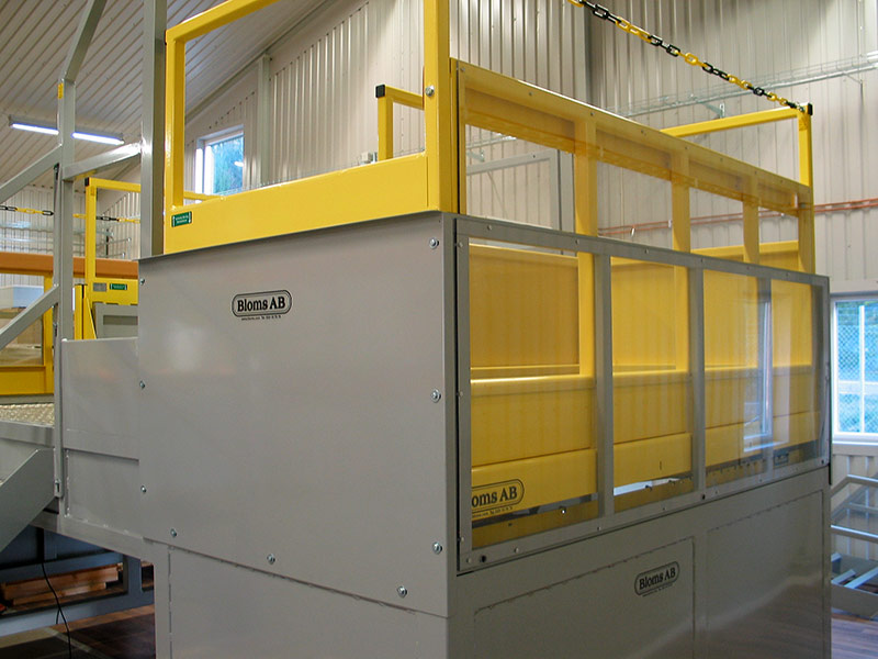 Bloms har levererat två stycken avsynings/provtagningsstationer, som har höj- och sänkbara ergonomiska lyftgolv. Golven är oberoende av varandra och har medföljande lågbyggda trappsteg som gör det enkelt och bekvämt att gå till och från arbetsplattformen oavsett vilken höjd den står i. Stationernas golvstativ har täckta sidor för att eliminera klämrisker oavsett golvets läge. För att göra dem öppnare samt att man kan se in i lägre pallar så är de utrustade med genomskinligt material som också gör känslan ”luftigare” när man arbetar där.