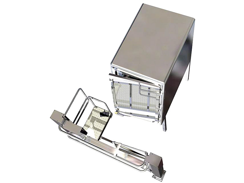 Plattformen har IP-klassat elskåp. Utrustad med självstängande grindar vilka är öppningsbara inåt. Grindarna fungerar som lås för golv i uppfällt läge och är då ej i vägen vid arbete på utrustningen. Plattformen bultas fast i golvet och fogas runt bottenplattan.