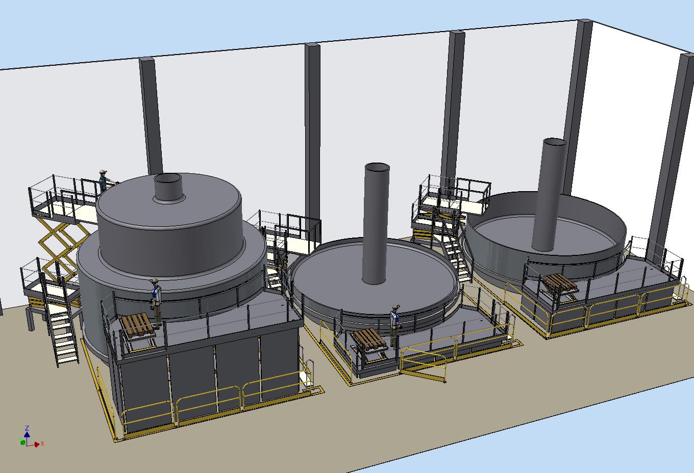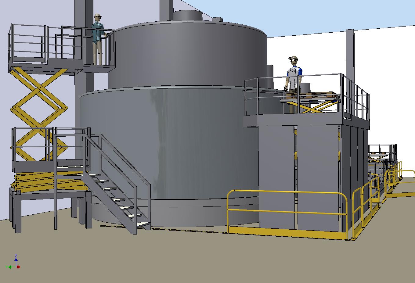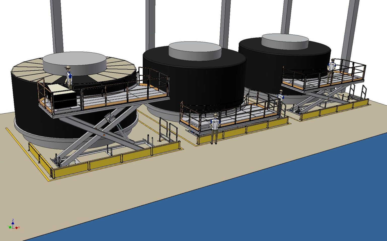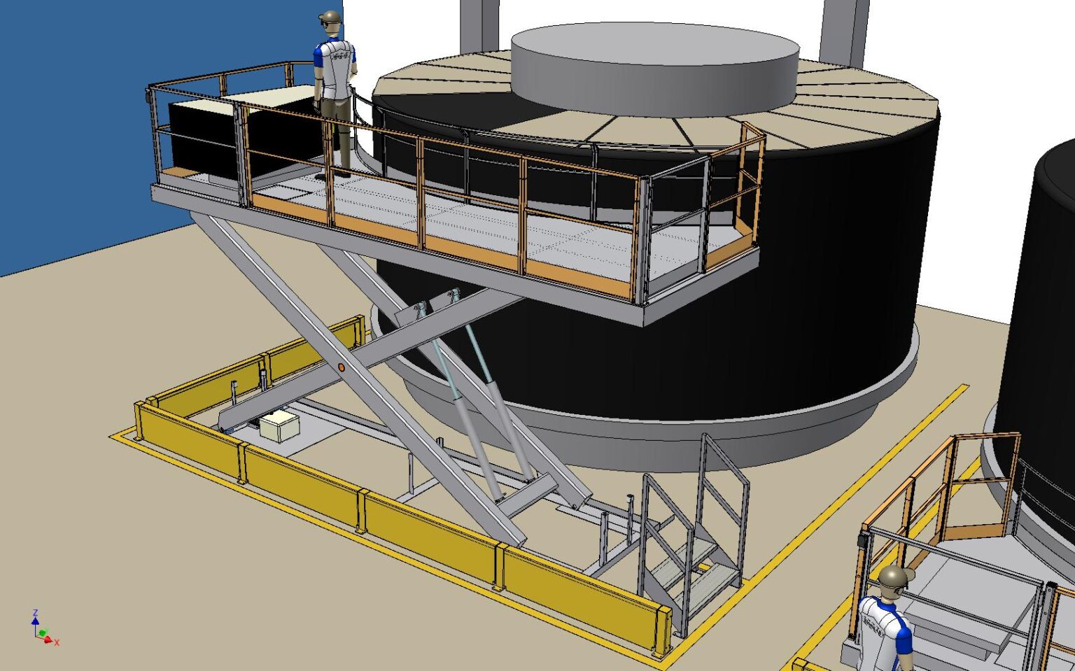 Stort saxlyftbord format som en halvmåne för att passa runt stora cylindrar på kunds arbetsplats.