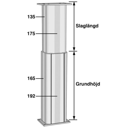 Mycket stabil, tystgående och underhållsfri lyftpelare, avsedd för att reglera arbetsläge i bord, fixturer, arbetsstationer m.m. Teleskopet är tillverkat av natureloxerat aluminium och alltså fullt återvinningsbart. LP192 har mycket god lyftkraft, är vridstyv och är momenttålig. Lyftpelarens stora glidlagringar ger maximal stabilitet. Det yttre teleskopsröret är försett med dubbla mutterspår på bägge långsidor, avsett för infästning av utrustning och tillbehör. Pelarna skall kompletteras med manöverdon och som tillbehör finns också golvfot, fotram och styrenhetsfäste, se Tillbehör för eldrivna pelare. Ett brett sortiment av standardmodeller finns att tillgå, kan dessutom skräddarsys efter önskemål.